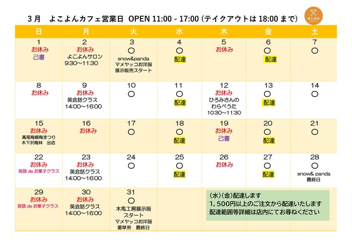 【3月営業カレンダー】